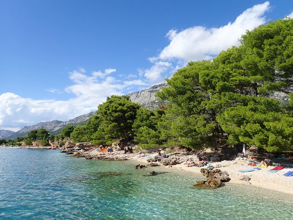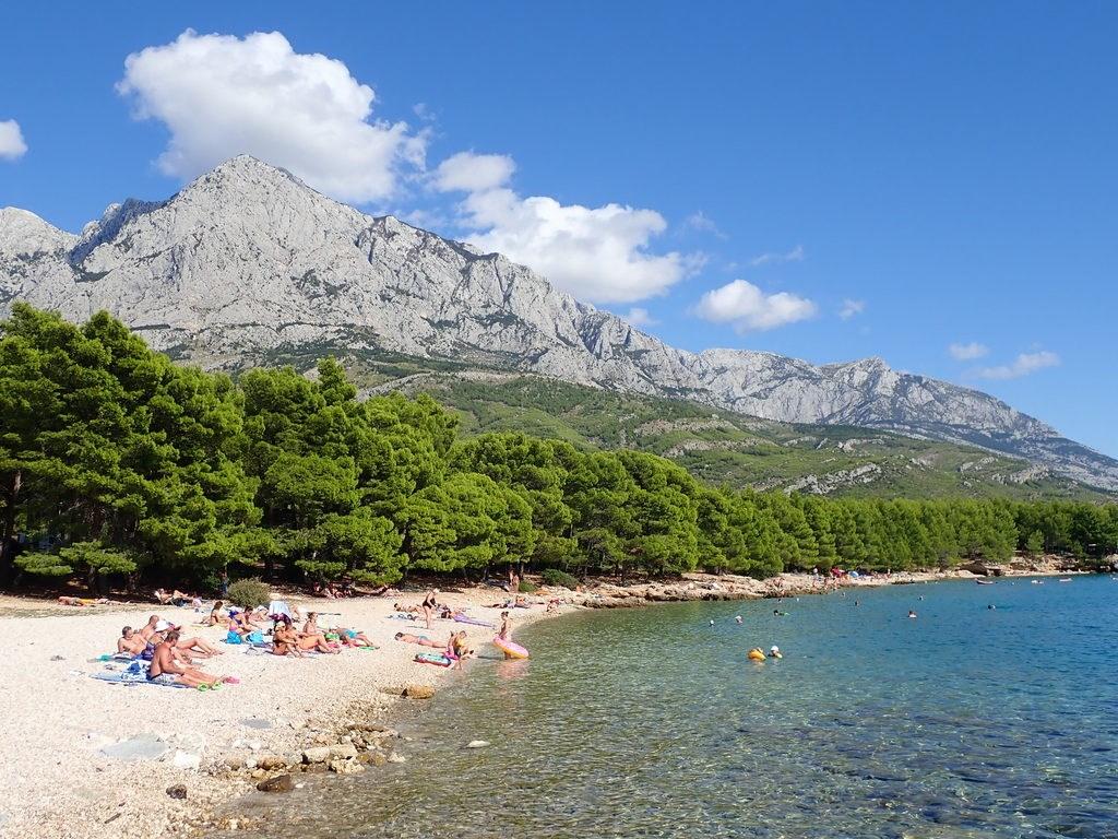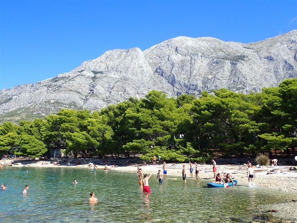 přírodní, oblázková, betonová plata, cca 350 m, vhodná pro děti.