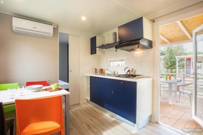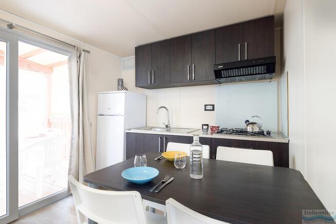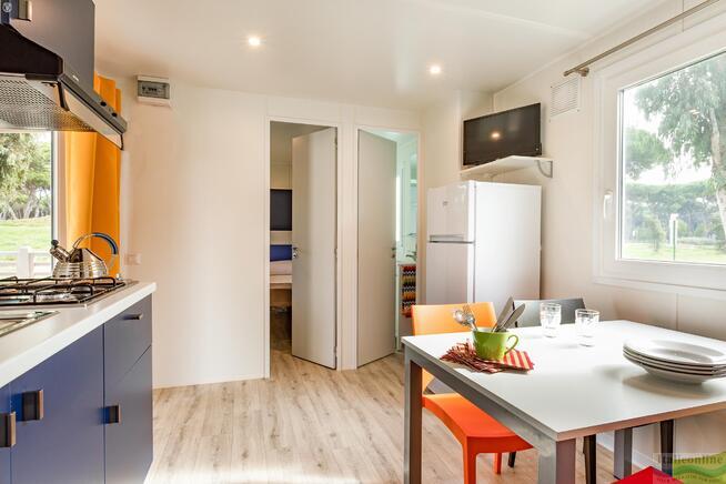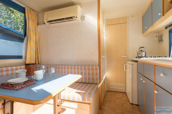 mobilhome pro max. 6 osob, cca 34m2. Obytná místnost s kuchyňským