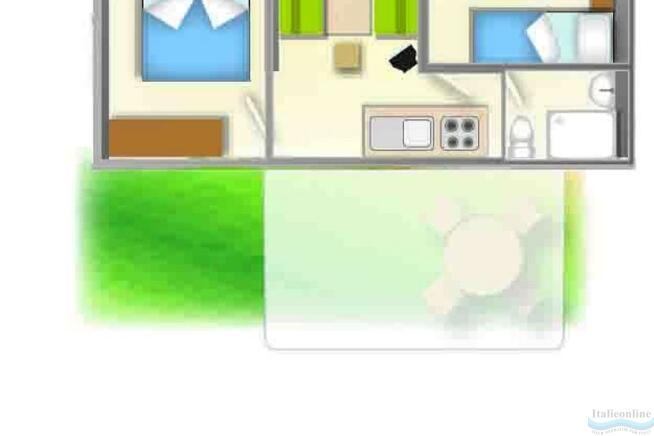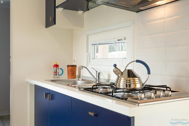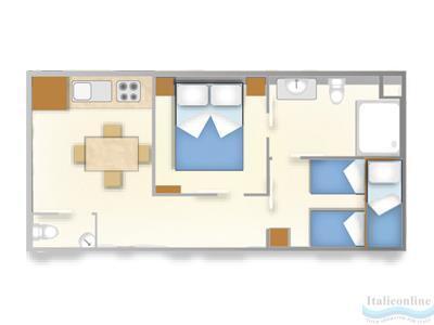 mobilhome pro max. 4 osoby + 1 dítě do 12 let, cca 25,5 m2. Obývací