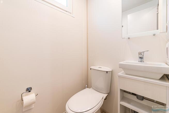 koupelna s WC a sprchou, WC, venkovní veranda s posezením.