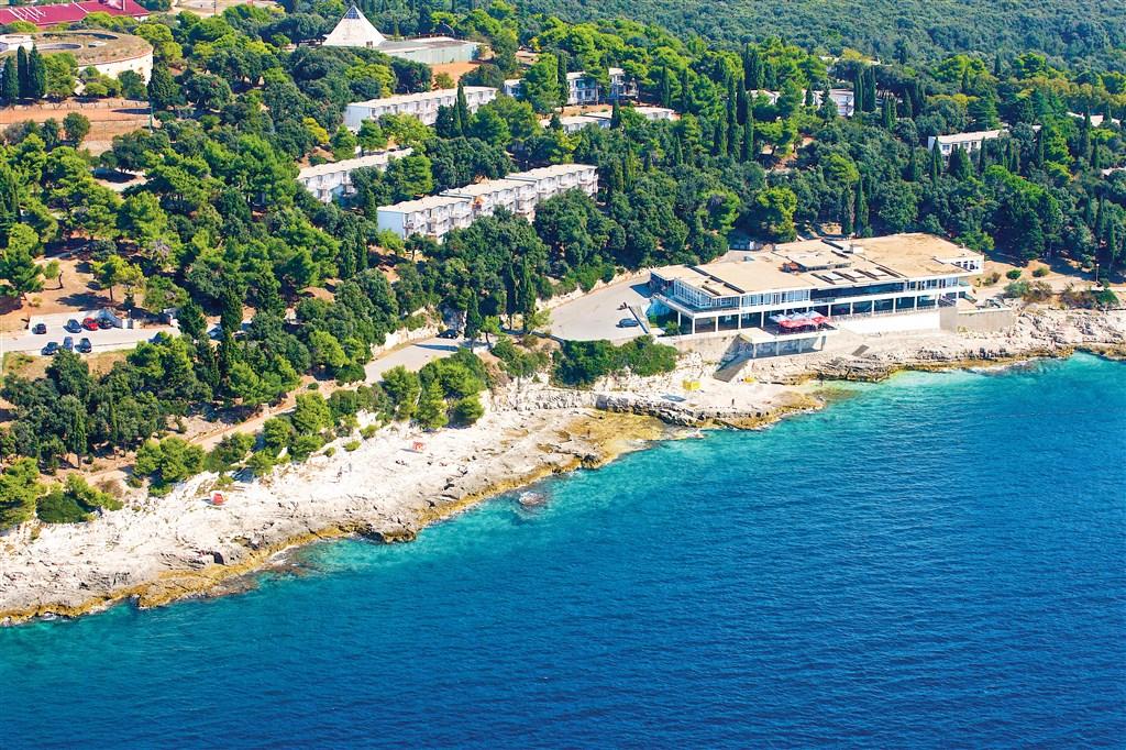 apartmánový komplex • terasovitě v mírném svahu • skalnaté pláže