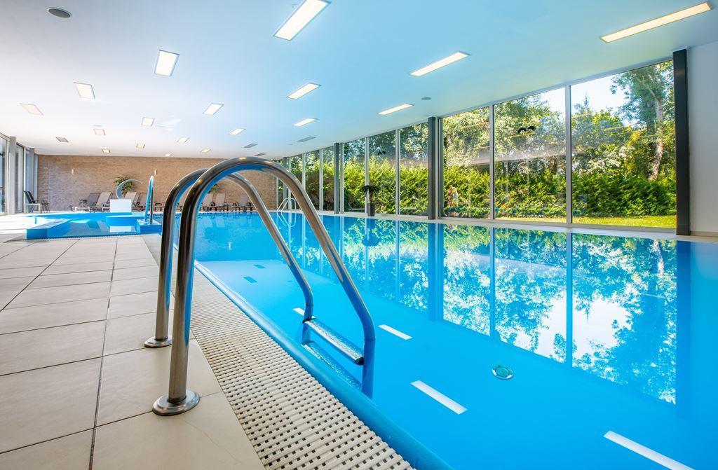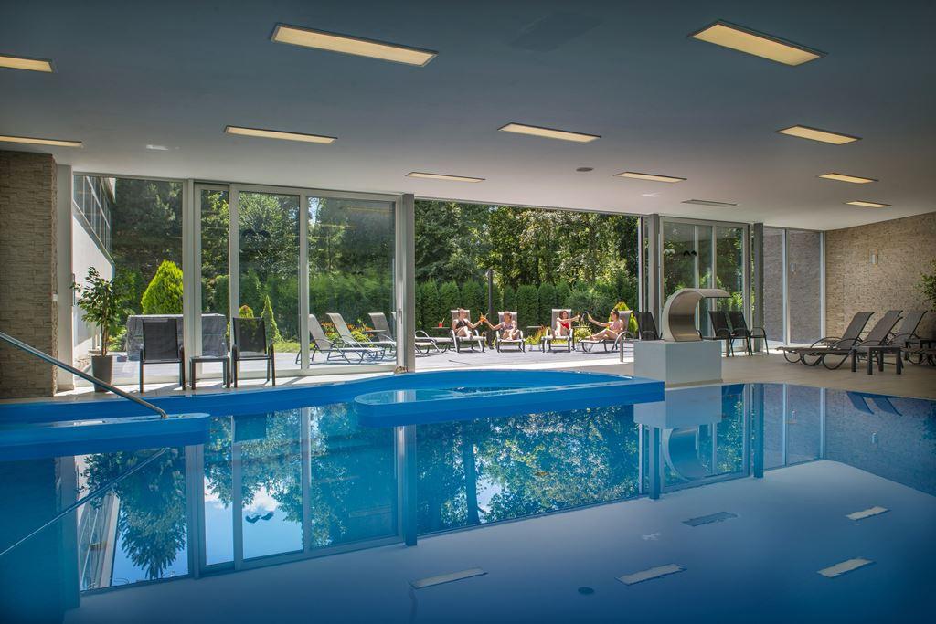 BazénHoteloví hosté mají k dispozici elegantní krytý bazén s teplotou vody 30 °C s přístupem na letní terasu s lehátky. Součástí je vodní gejzír a vodopád.