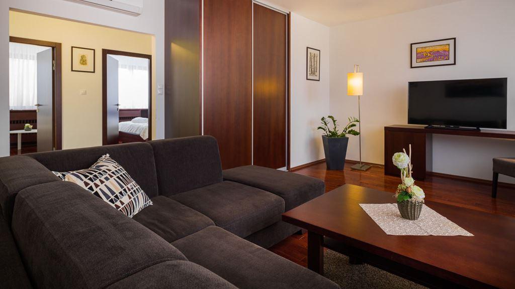 UbytováníHotel nabízí velmi komfortní ubytování v dvoulůžkových pokojích a apartmánech. K vybavení pokojů patří koupelna s fénem, župan, televize se satelitním přijímačem, telefon, minibar, bezpečnostní schránka, balkon, klimatizace a bezdrátové připojení WIFI. Na pokoji je možnost přistýlky. Rodiny s malými dětmi si mohou objednat dětskou postýlku.