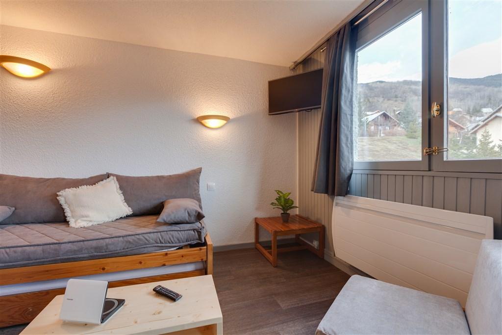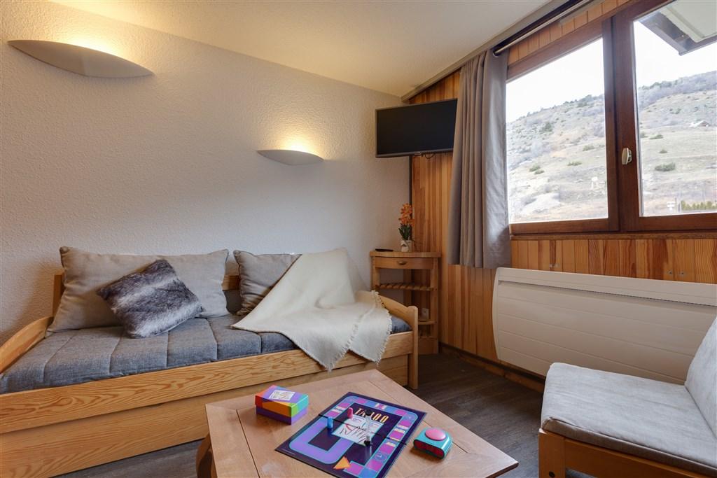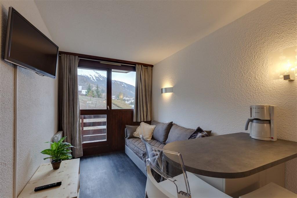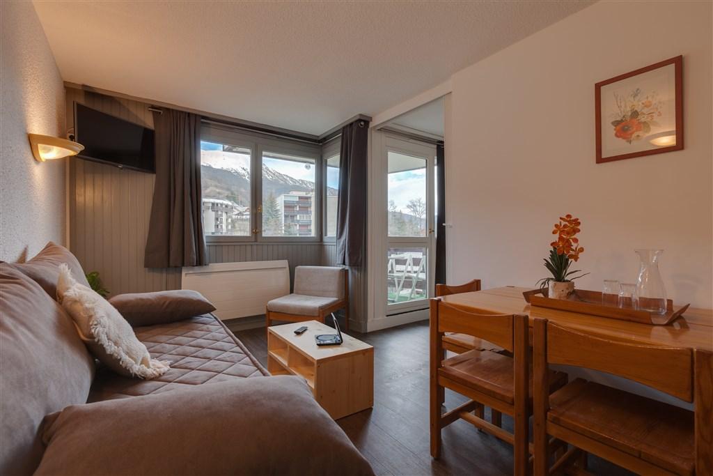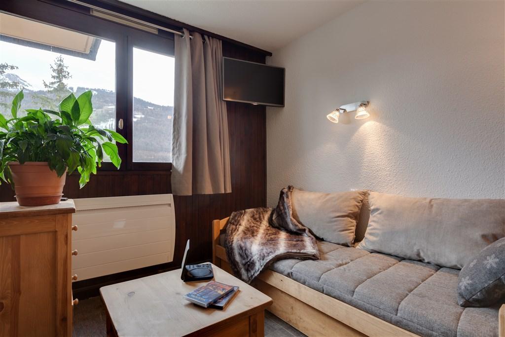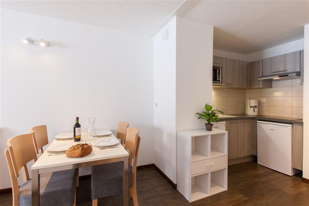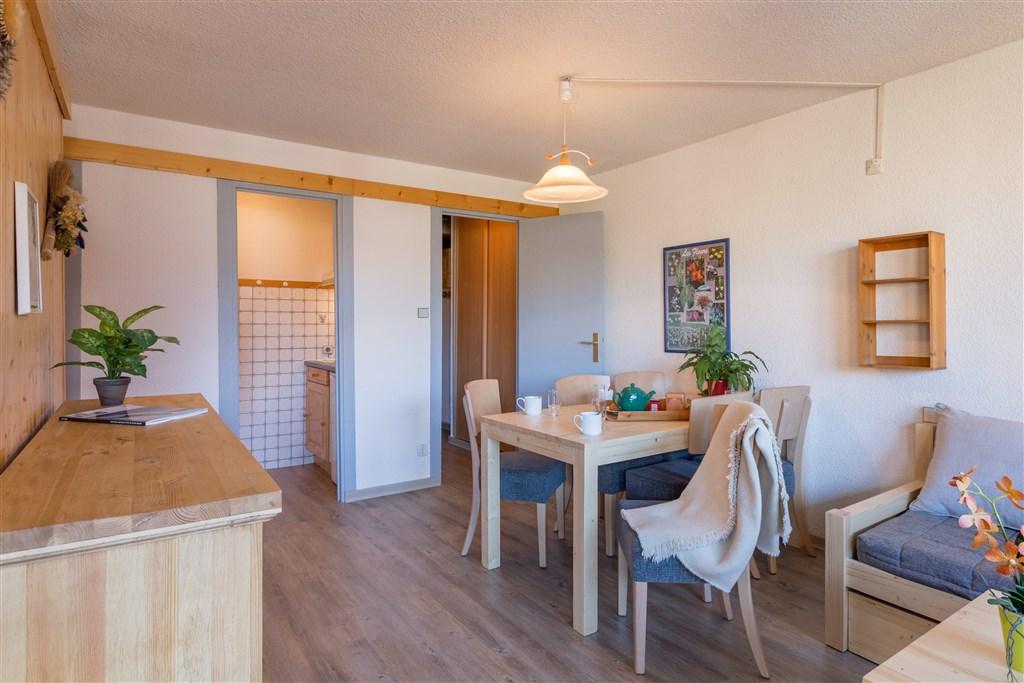 Studio pro 3 - 4 osoby, 1 ložnice + obyvák - 31 m² - 1. ložnice výklenek s manželskou postelí, obývací pokoj s kuchyňským koutem a rozkládacím gaučem pro 2 osoby, koupelna (vana nebo sprcha, WC).