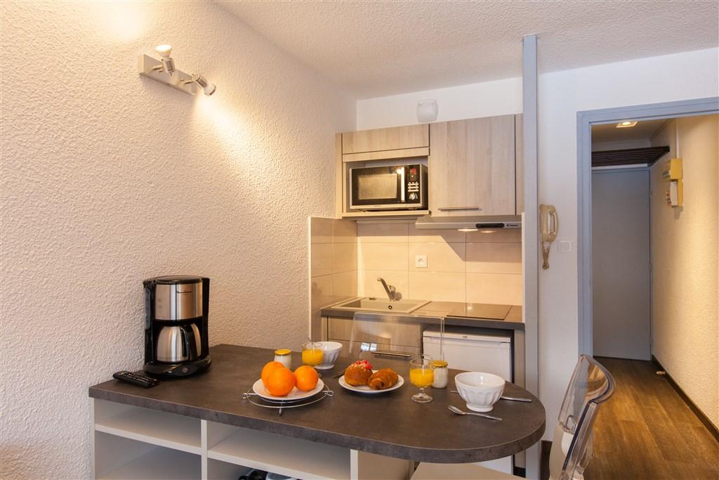 Studio pro 2 osoby, pokoj - 17 m² pokoj s kuchyňským koutem a rozkládacím gaučem pro 2 osoby, koupelna (vana nebo sprcha, WC).