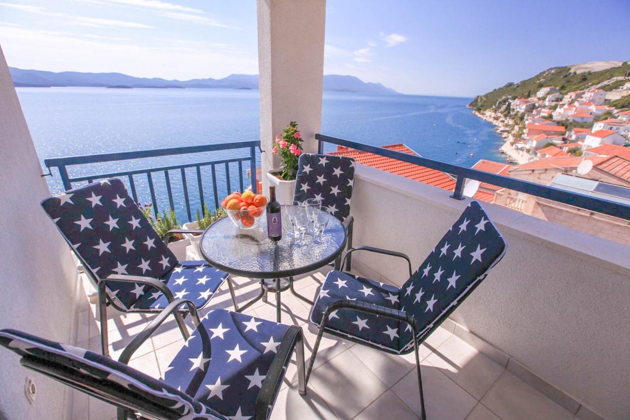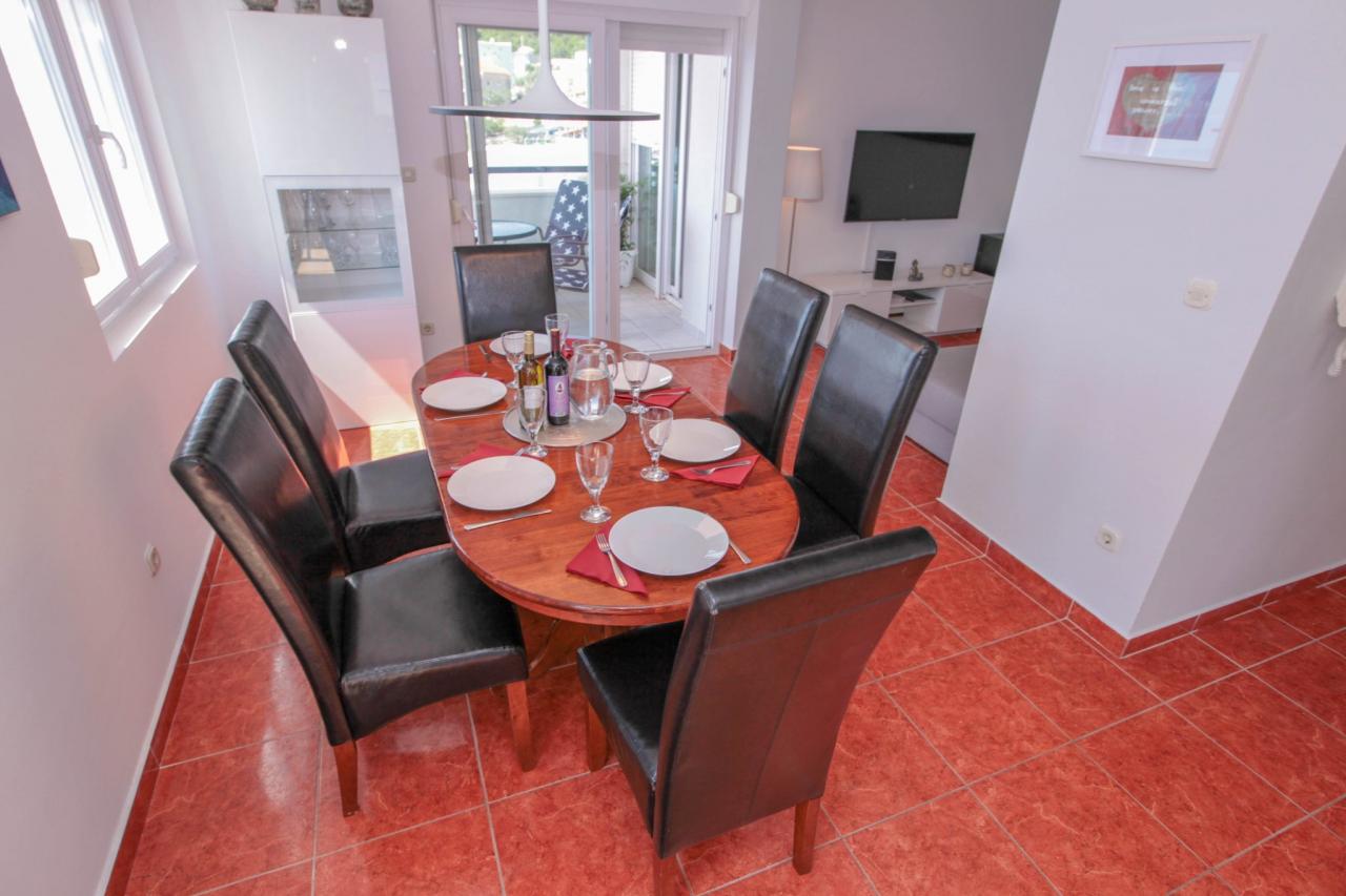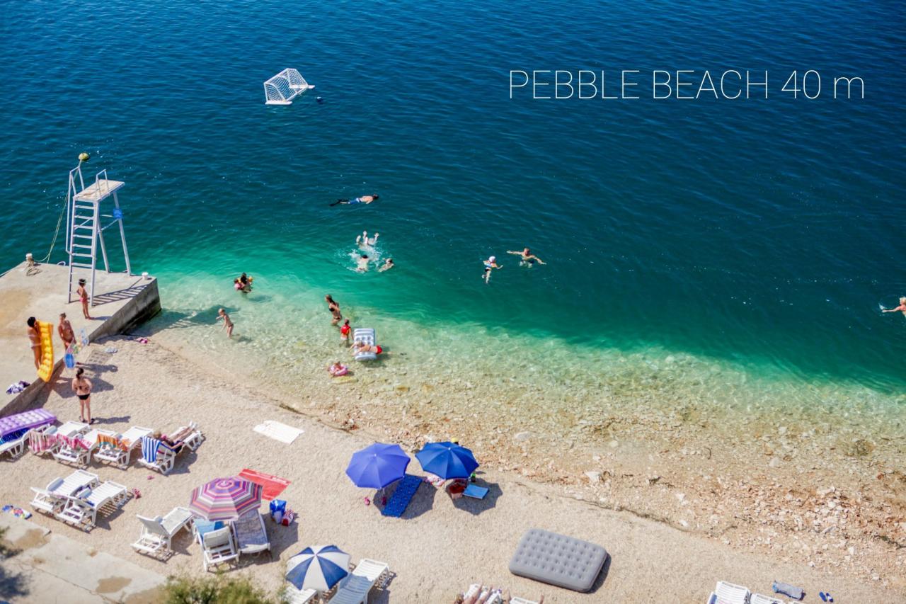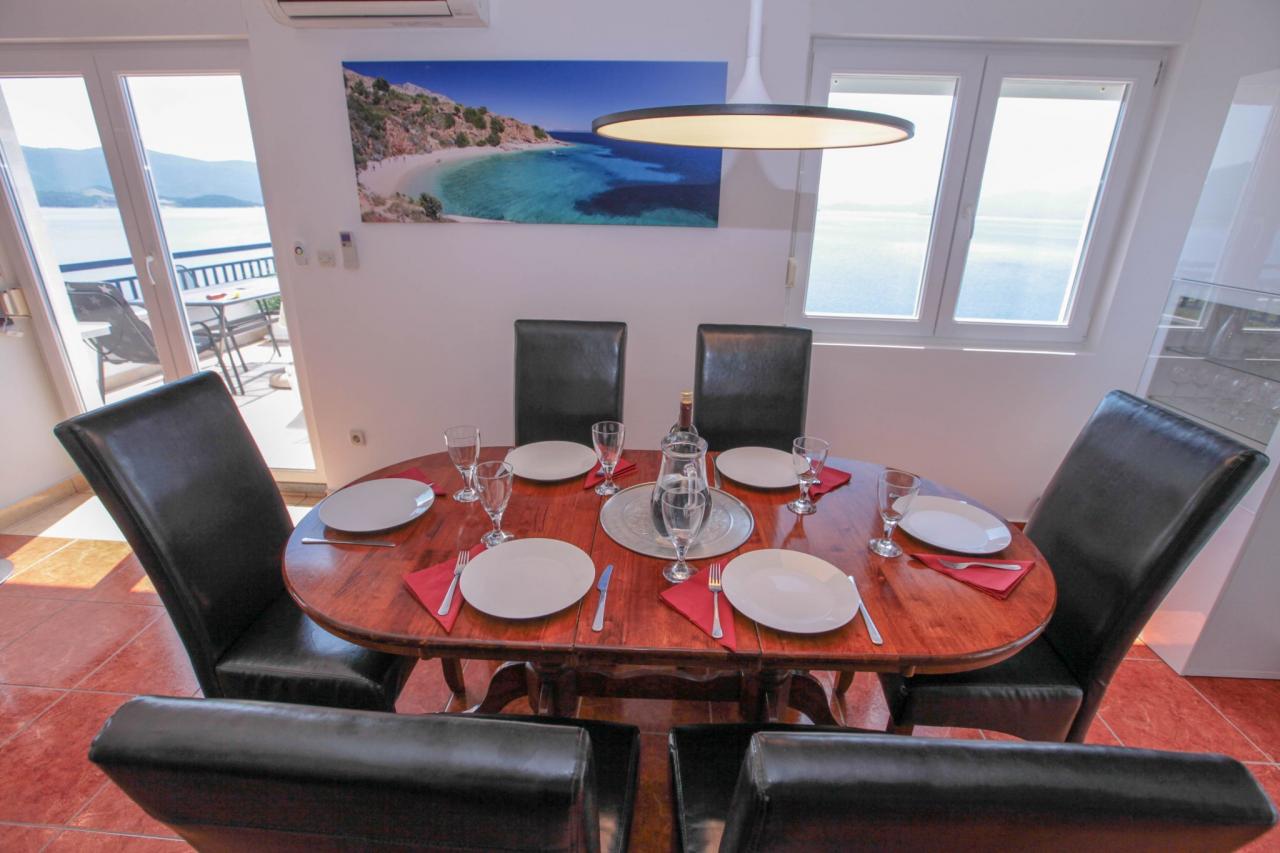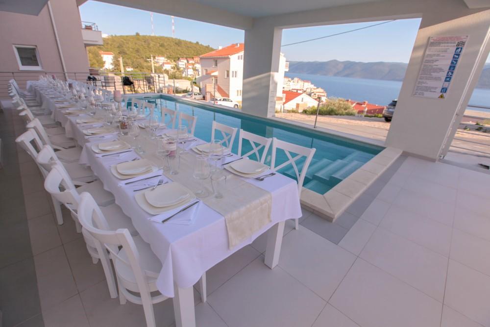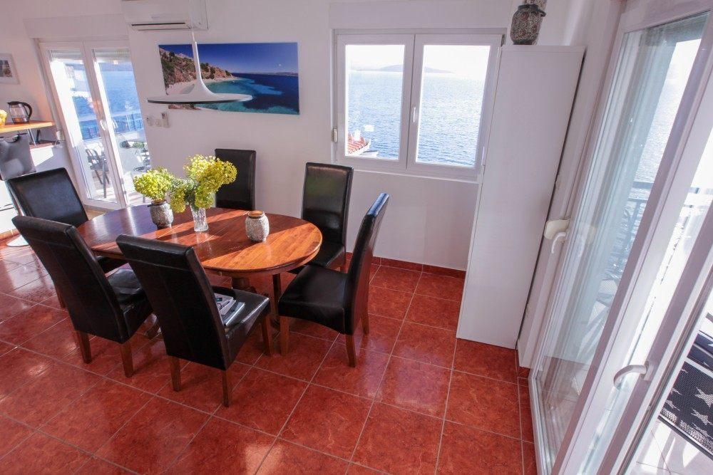 Apartmán Empire byl před sezonou 2018 kompletně zrenovován a jeho terasy zaplněny mediteránskými rostlinami a bylinami. Nová je kuchyně, veškerý nábytek, sedačka, zdravotní matrace i pračka. V obývacím pokoji byla instalována LCD 4K Smart TV se satelitem. V jídelně jsou nová feng-šuej LED světla, namontován dřevěný bar s posezením. Terasa je vybavena elektrickým grilem a nově osvětlena led světly. Apartmán je rovněž vybaven čtyřmi kvalitními klimatizačními jednotkami. Tento prostorný penthouse je ideální pro skupiny přátel, vejde se sem až devět hostů. V jeho blízkosti je obchod s potravinami. Přímo nad pláží pod domem je nově otevřená restaurace s lounge barem "The Bridge". Na soukromé terase necelých 100 metrů od domu si rovněž můžete u místní rodiny objednat kvalitní domácí dalmatské speciality a poznat tak kouzlo domácí atmosféry. Jídlo si můžete rovněž objednat přímo na terasu svého apartmánu.